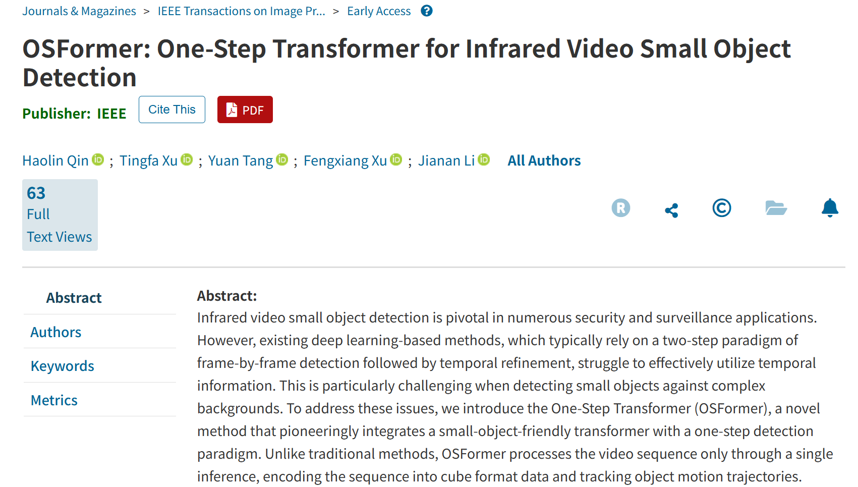 北理工新葡的京集团350vip8888官网许廷发教授团队在红外弱小集群目标检测领域取得新突破